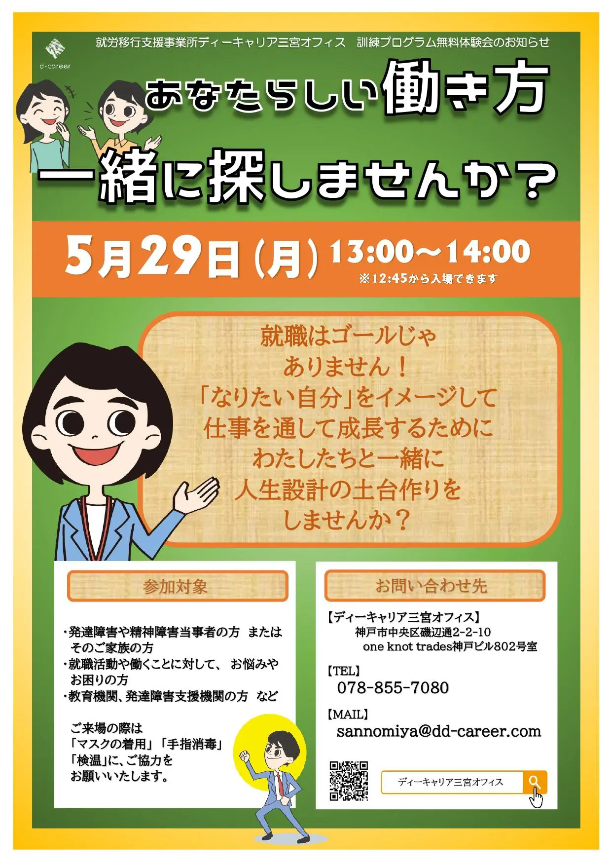 【ディーキャリア三宮オフィス】5月29日(月)「あなたらしい働き方一緒に探しませんか?」