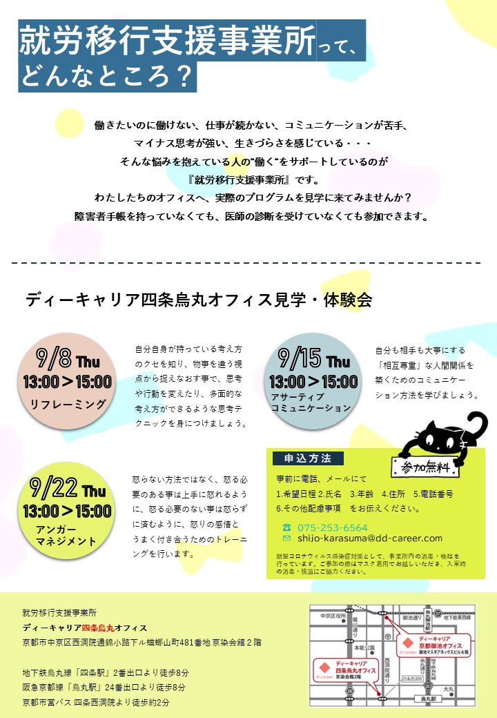 【ディーキャリア四条烏丸オフィス】9月8日(木)・15日(木)・22日(木)「見学・体験会」