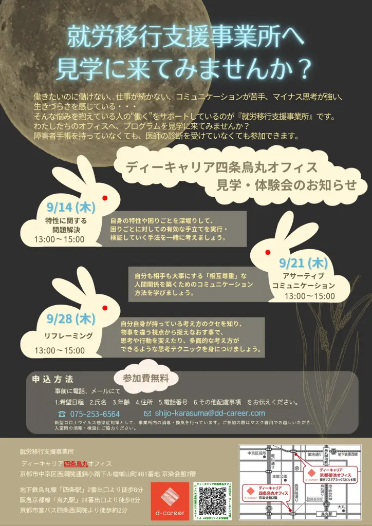 【ディーキャリア四条烏丸オフィス】9月14日(木)・21日(木)・28日(木)「見学・体験会」