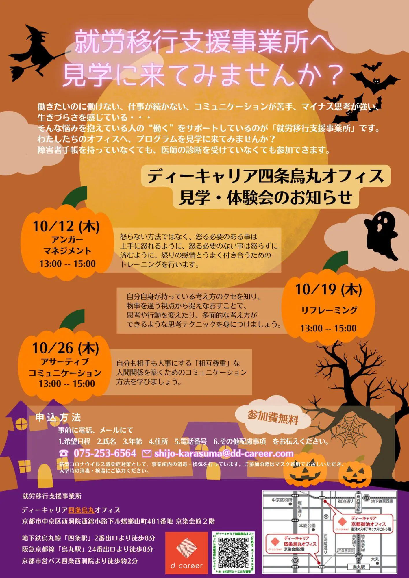 【ディーキャリア四条烏丸オフィス】10月12日(木)・19日(木)・26日(木)「見学・体験会」