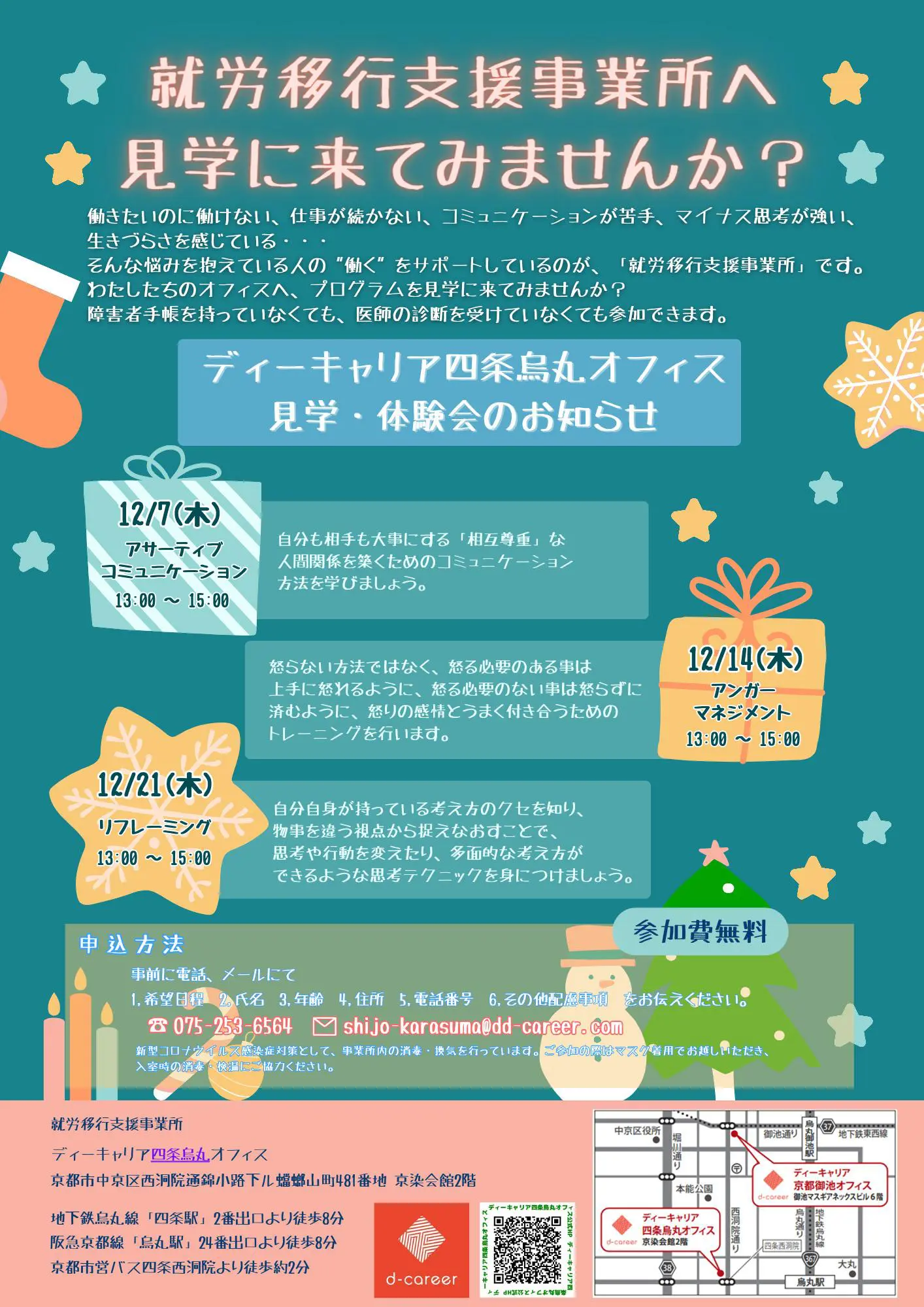 【ディーキャリア四条烏丸オフィス】12月07日(木)・14日(木)・21日(木)「見学・体験会」