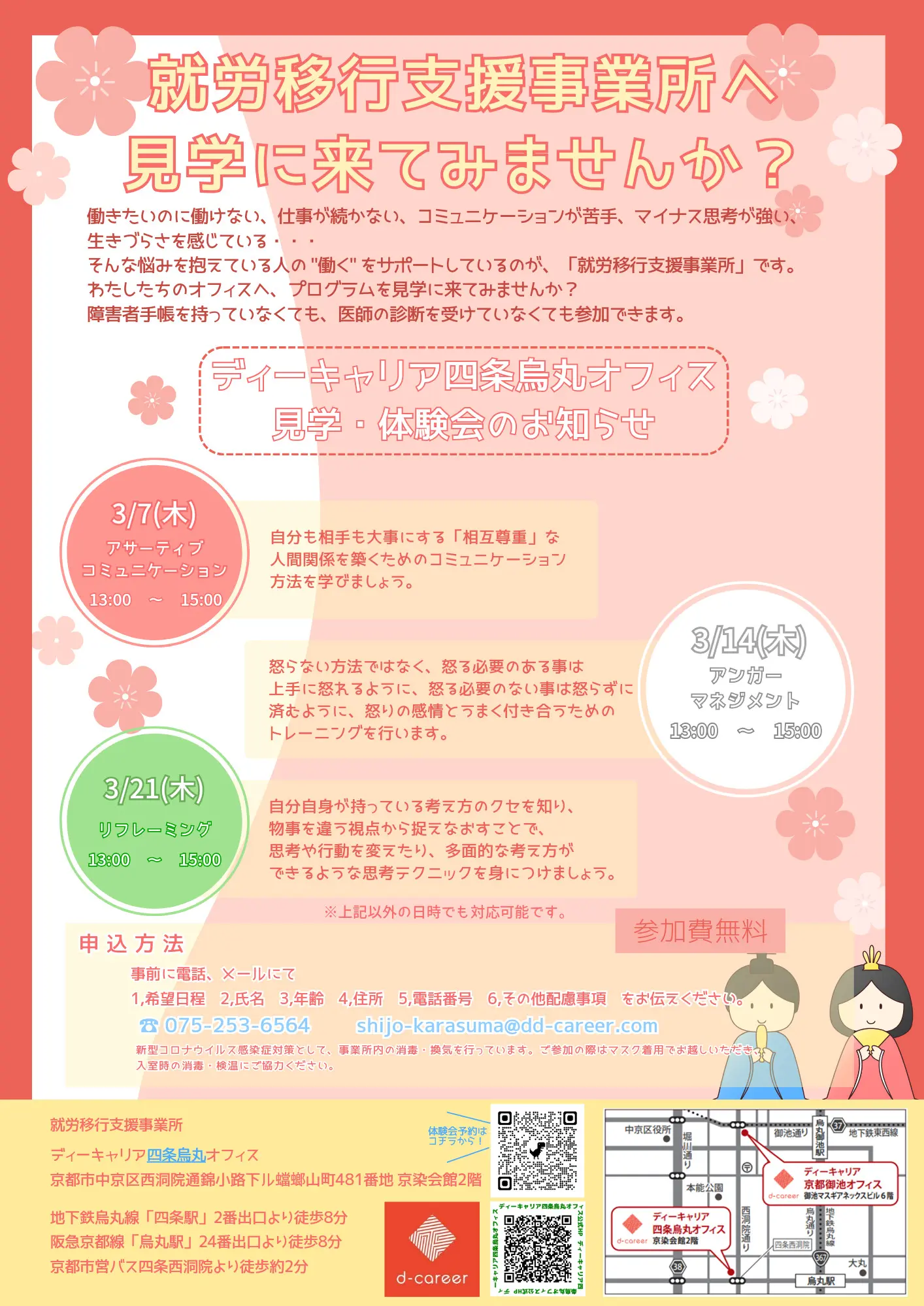【ディーキャリア四条烏丸オフィス】3月14日(木)・21日(木)「見学・体験会」