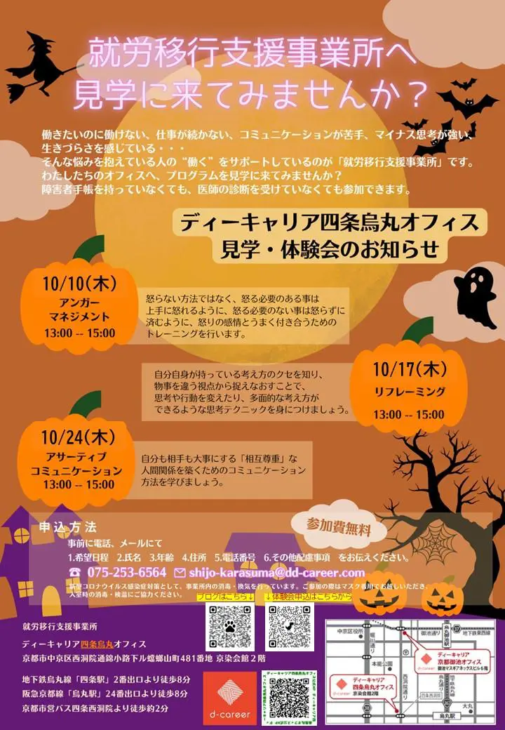 【ディーキャリア四条烏丸オフィス】10月10日(木)・17日(木)・24日(木)「見学・体験会」