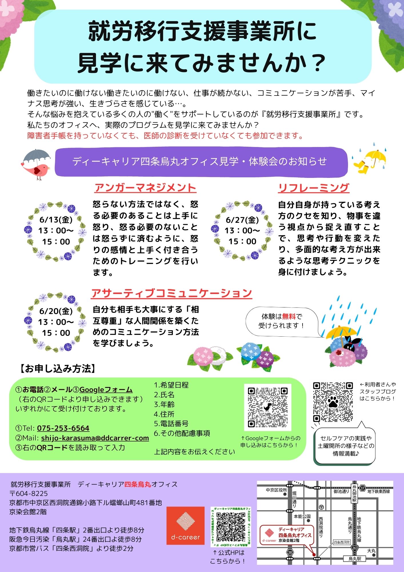 【ディーキャリア四条烏丸オフィス】6月13日(金)・20日(金)・27日(金)「見学・体験会」