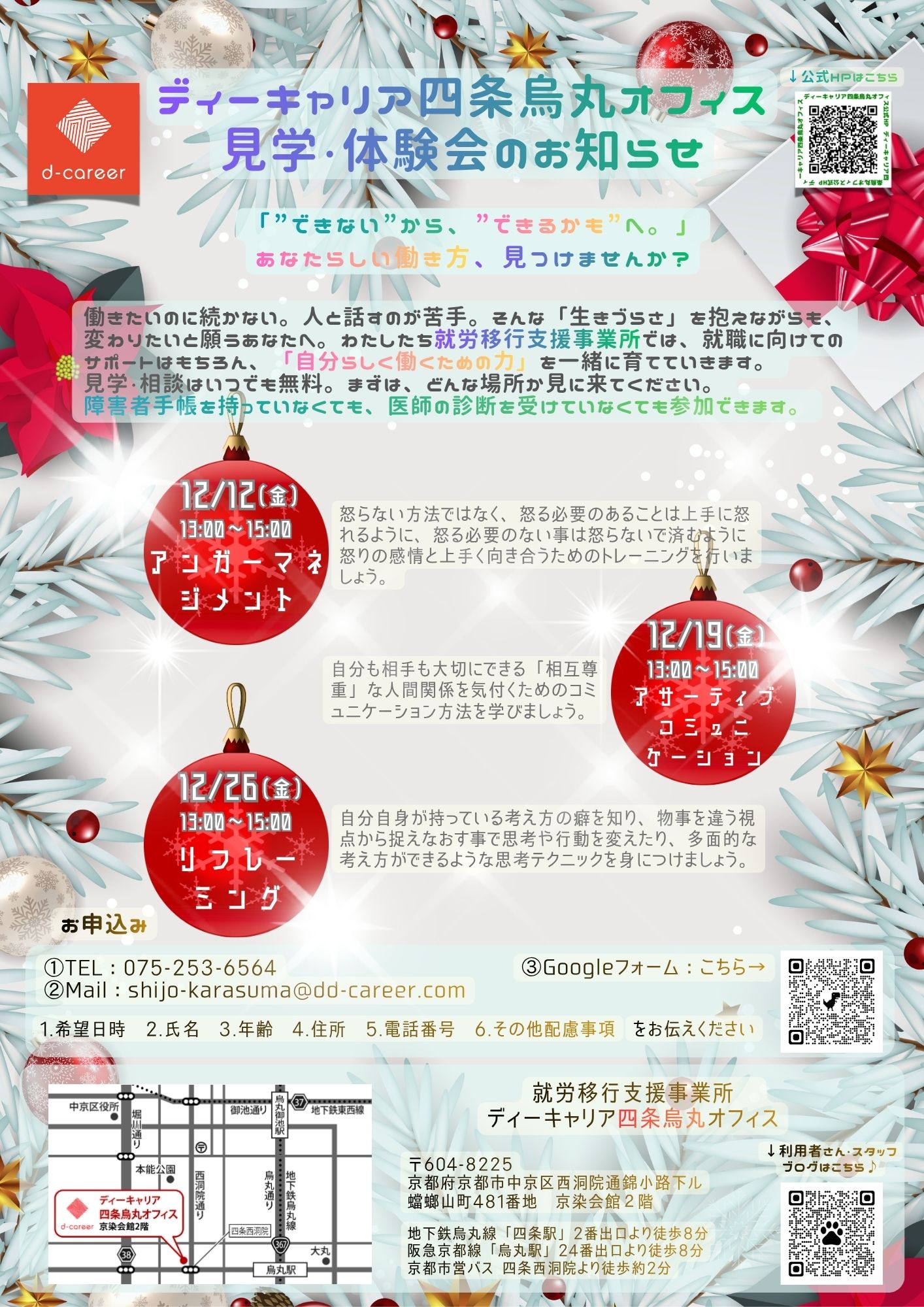 【ディーキャリア四条烏丸オフィス】12月12日(金)・19日(金)・26日(金)「見学・体験会」