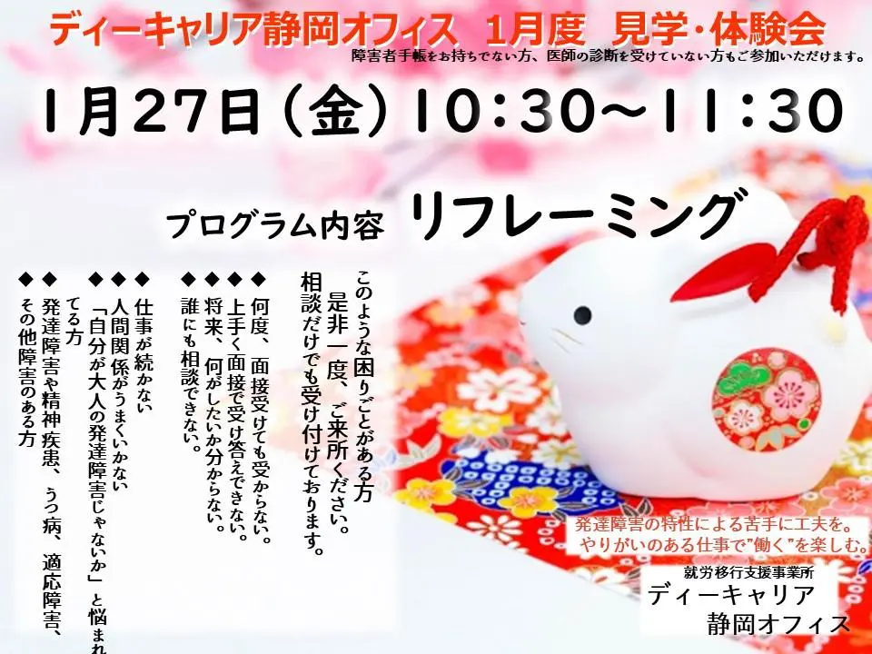【ディーキャリア静岡オフィス】1月27日(金)「無料体験会のご案内~脱!ネガティブ(リフレーミング)~」