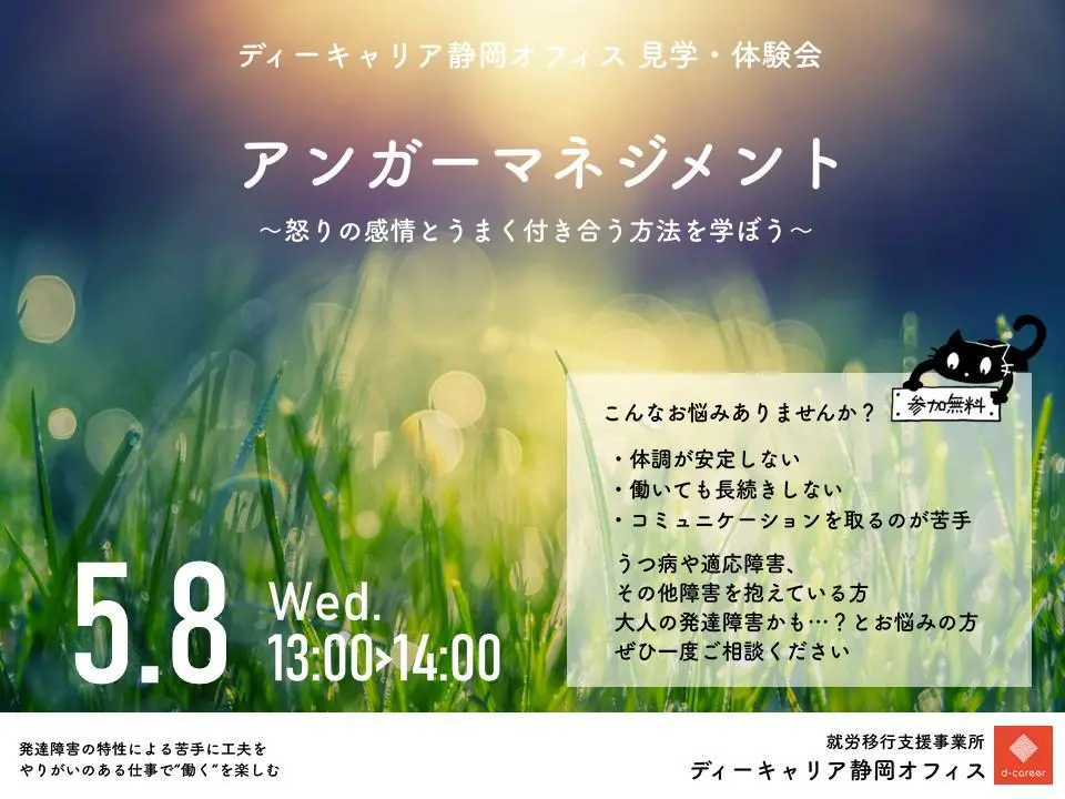 【ディーキャリア静岡オフィス】5月8日(水)「アンガーマネジメント体験会」