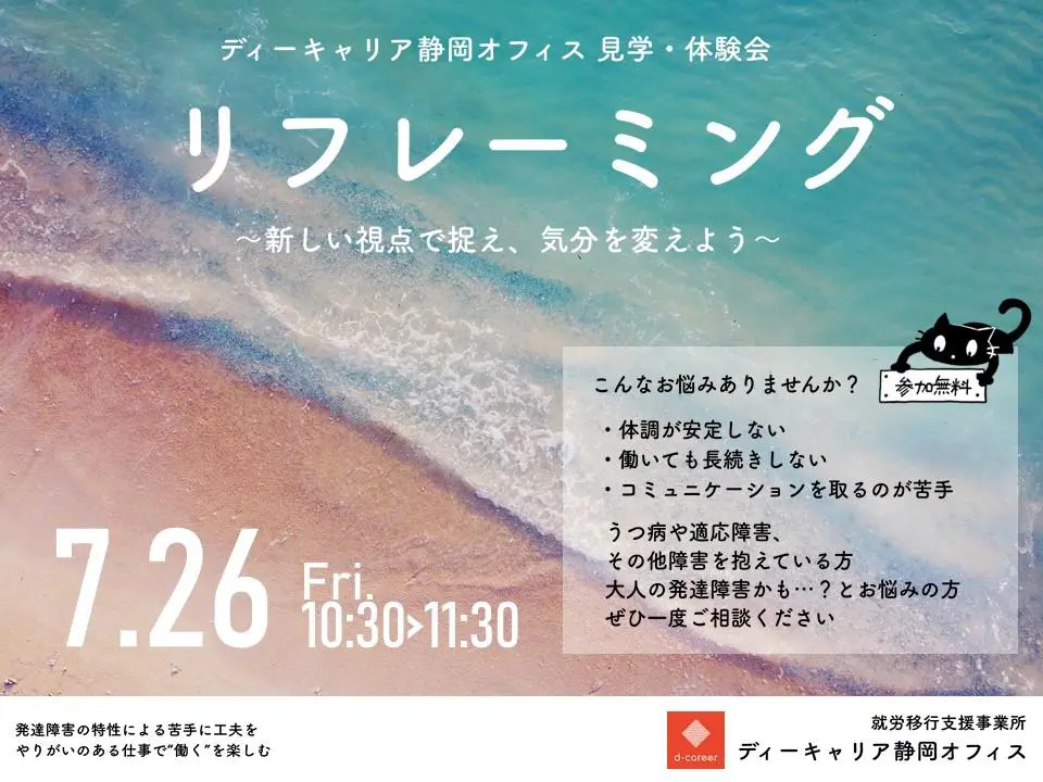 【ディーキャリア静岡オフィス】7月10日(水)・15日(祝・月)・26日(金)「体験会」