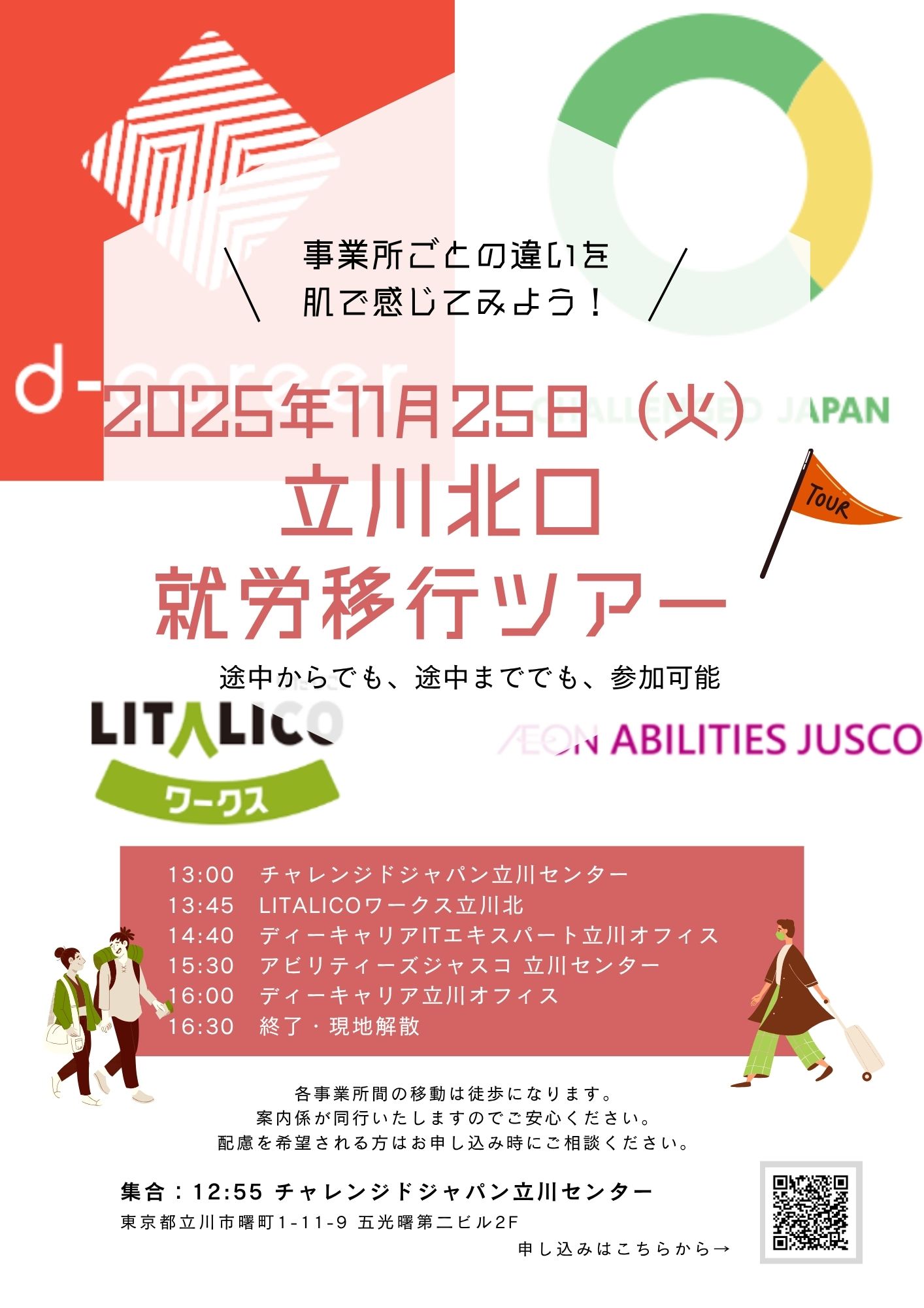 【ディーキャリア立川オフィス】11月25日(木)「立川北口就労移行ツアー」