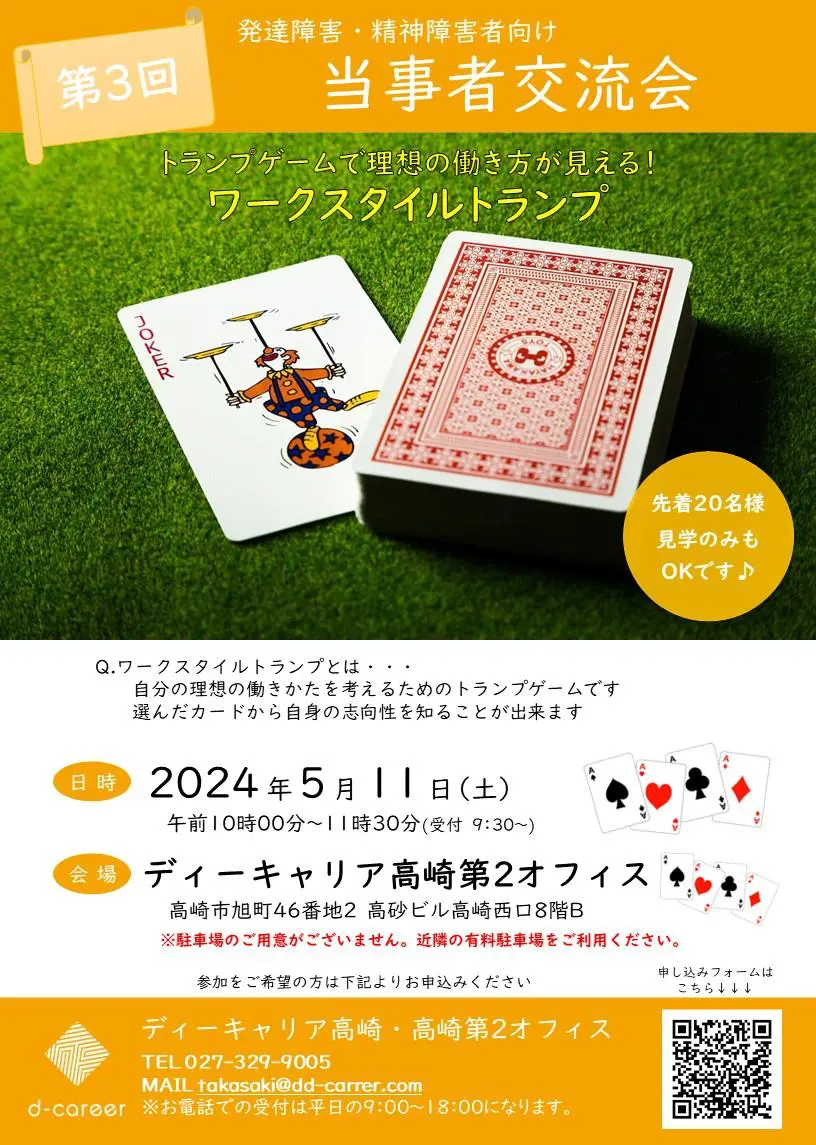 【ディーキャリア高崎第2オフィス】5月11日(土)「当事者交流会~トランプゲームから見える自分の理想の働きかた!~」