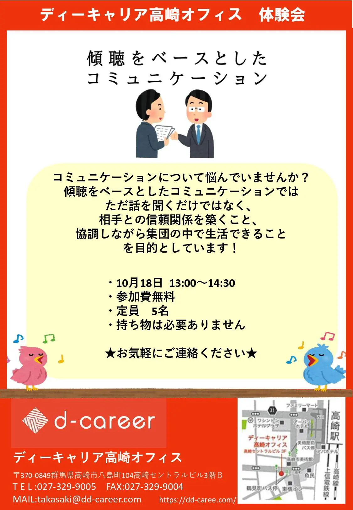【ディーキャリア高崎オフィス】10月18日(火)「傾聴をベースとしたコミュニケーション」