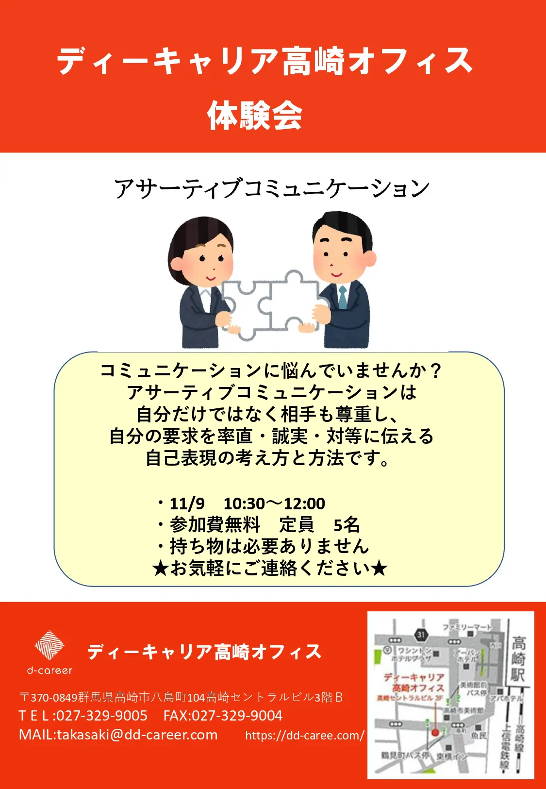 【ディーキャリア高崎オフィス】11月9日(水)「アサーティブコミュニケーション」