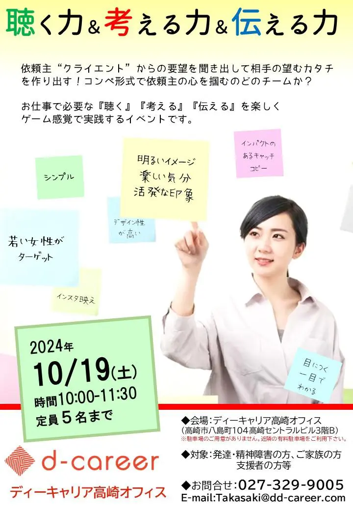 【ディーキャリア高崎オフィス】10月19日(土)「聴く力×考える力×伝える力」