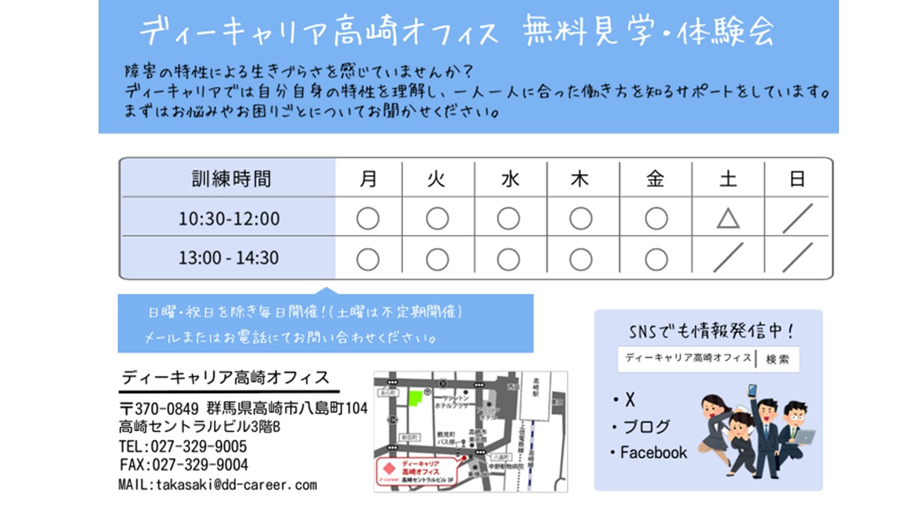 【ディーキャリア高崎オフィス】平日開催「無料見学・体験会」