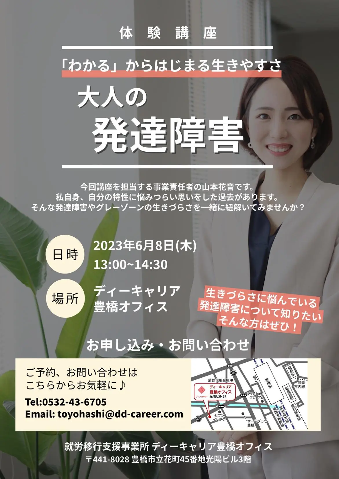 【ディーキャリア豊橋オフィス】6月08日(木)「「わかる」からはじまる生きやすさ 大人の発達障害」