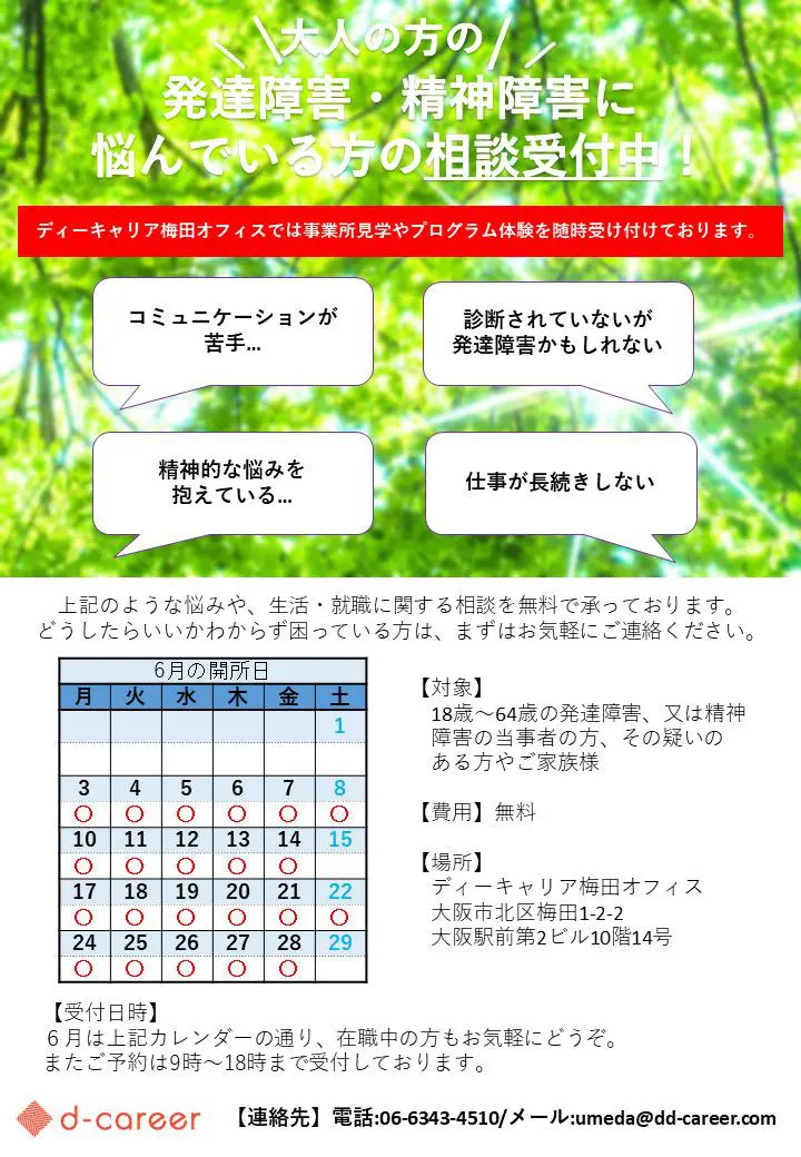 【ディーキャリア梅田オフィス】6月平日開催「6月の事業所見学・体験日のお知らせ」