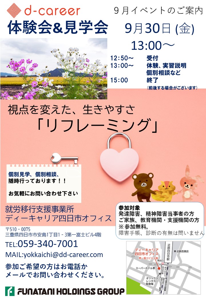 【ディーキャリア四日市オフィス】9月30日(金)「体験&見学会」