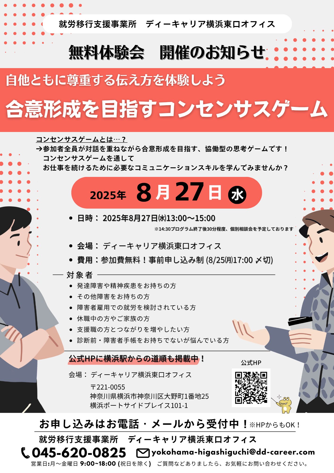 【ディーキャリア横浜東口オフィス】8月27日(水)「合意形成を目指すコンセンサスゲーム」