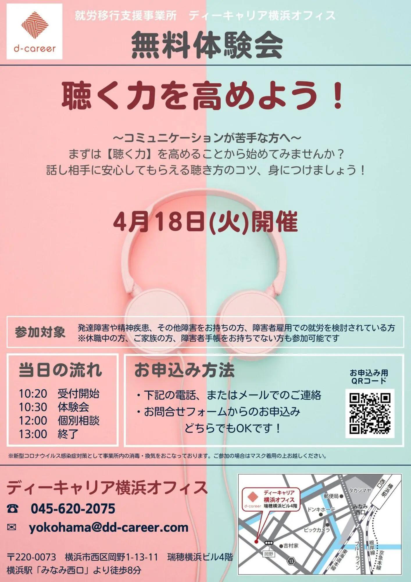【ディーキャリア横浜オフィス】4月18日(火)「聴く力を高めよう!」