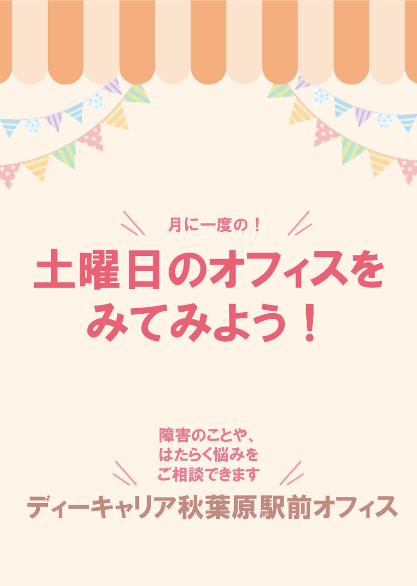ディーキャリア秋葉原駅前オフィスでは、月1回の頻度で土曜日も開所しております。