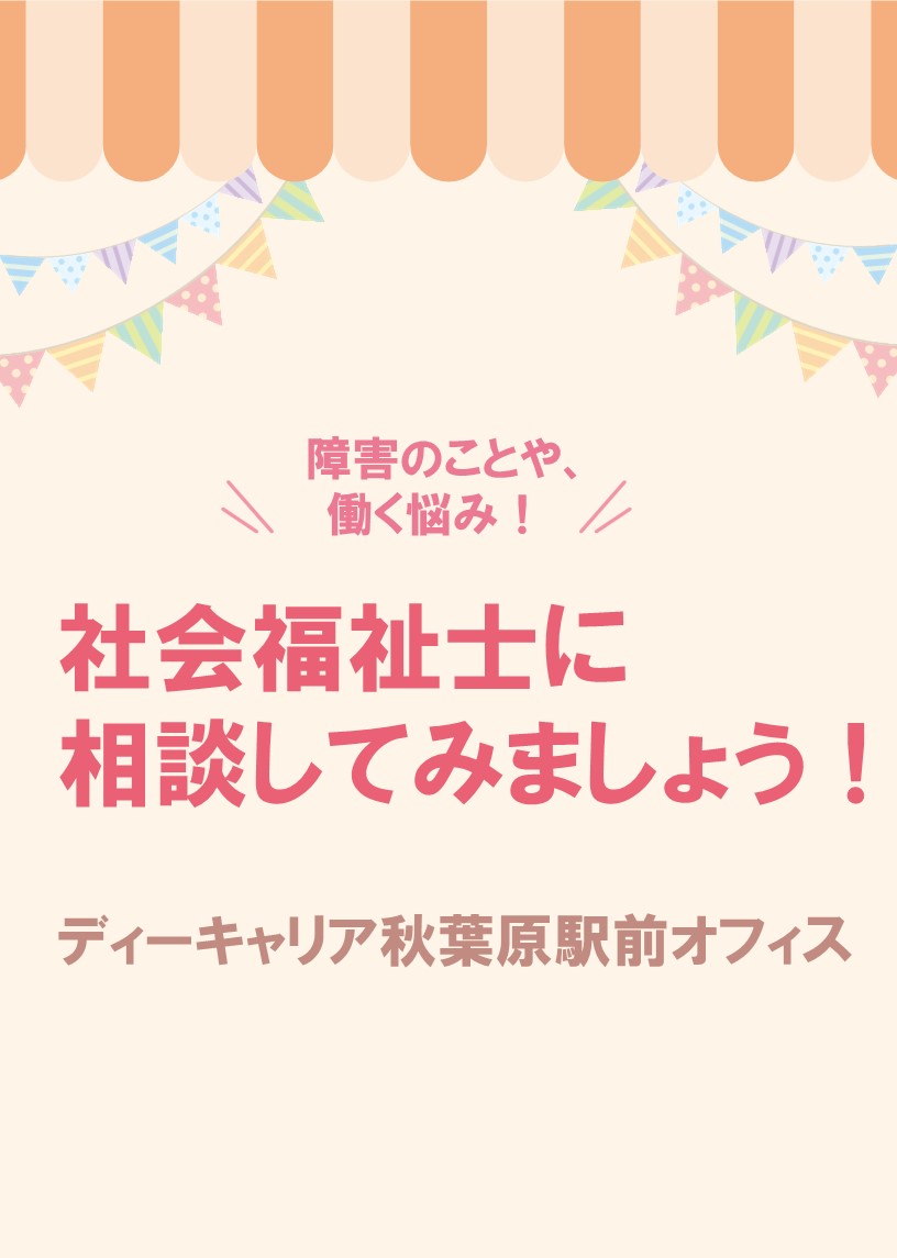【ディーキャリア秋葉原駅前オフィス】毎週月曜日開催「社会福祉士に相談してみよう!」