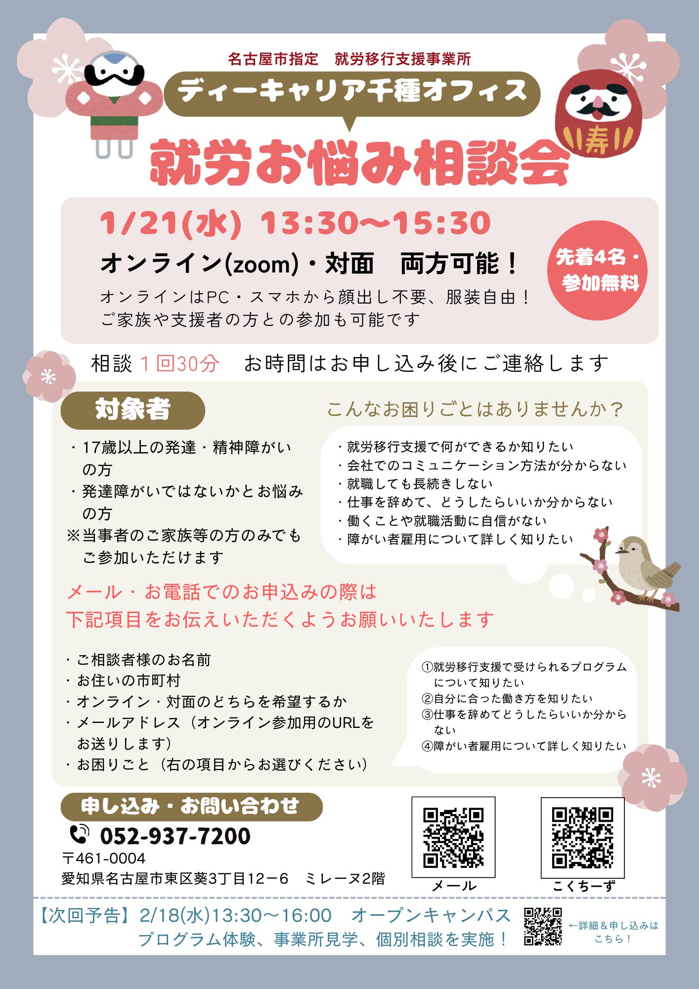 【ディーキャリア千種オフィス】01月21日(水)「就労お悩み相談会」