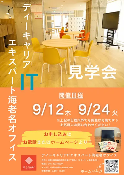 【ディーキャリアITエキスパート海老名オフィス】09月12日(木)・09月24日(火)「オフィス見学会」