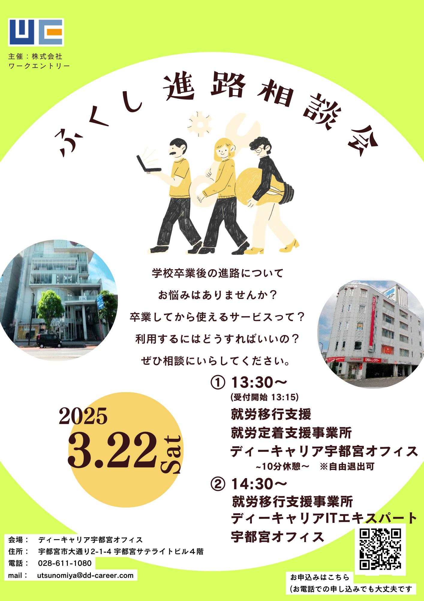 【ディーキャリアITエキスパート宇都宮オフィス】3月22日(土)「ふくし進路相談会」