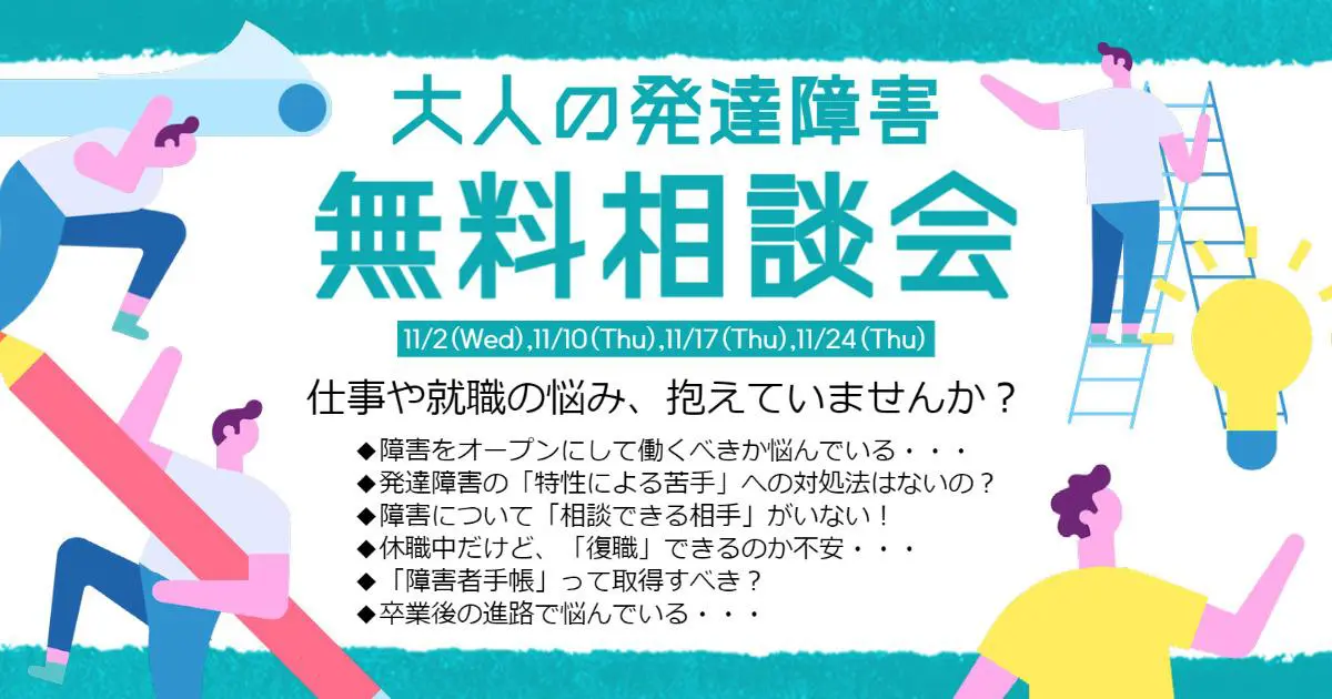 【ディーキャリア郡山オフィス】11月2日(水)・10日(木)・17日(木)・24日(木)「大人の発達障害~11月の無料個別相談会~」