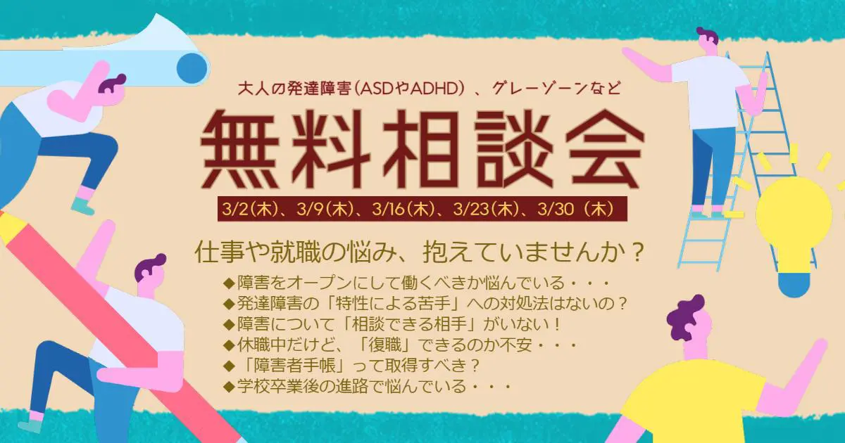 【ディーキャリア郡山オフィス】3月02日(木)・09日(木)・16日(木)・23日(木)・30日(木)「大人の発達障害(ASDやADHD)・グレーゾーンなど無料相談会」
