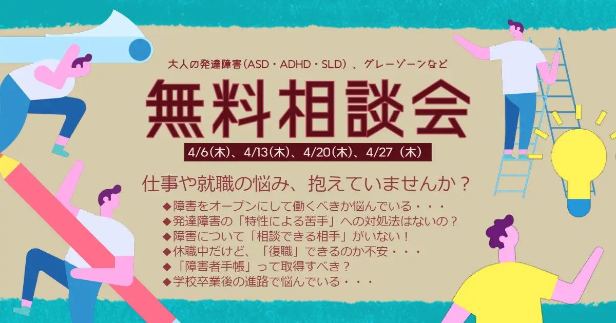 【ディーキャリア郡山オフィス】4月6日(木)・4月13日(木)・4月20日(木)・4月27日(木) 「大人の発達障害・グレーゾーン~無料個別相談会~」