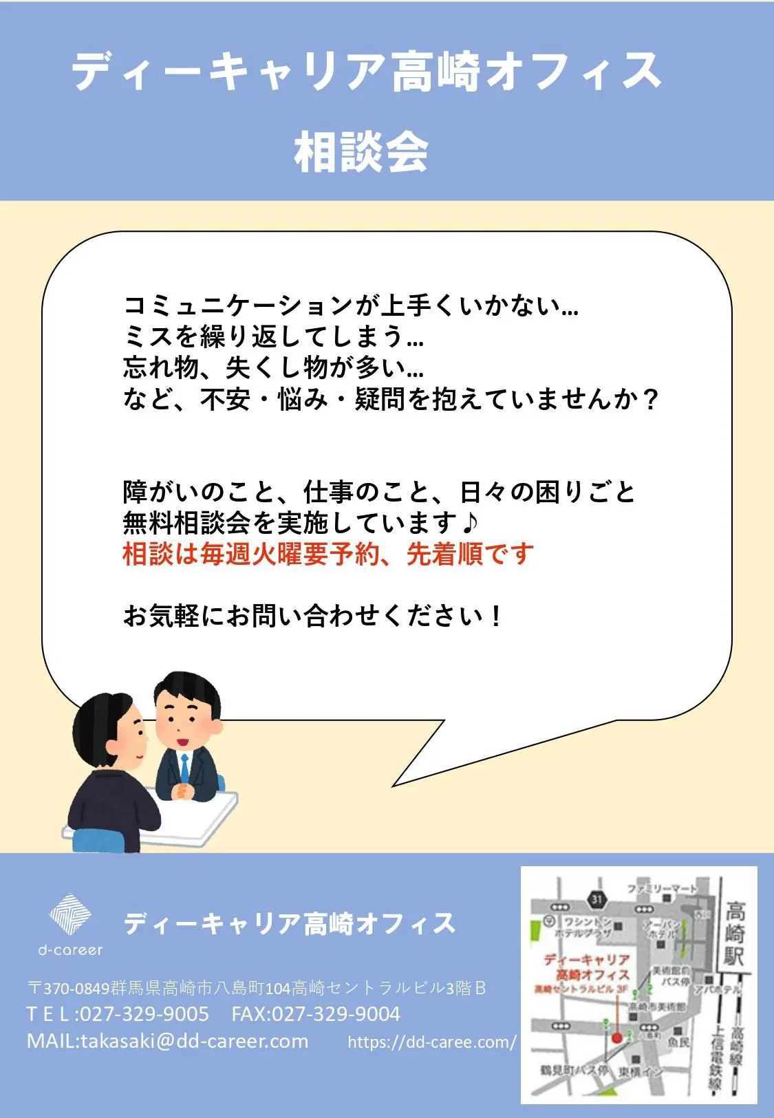 【ディーキャリア高崎オフィス】毎週火曜日開催「無料相談会」