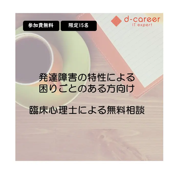 【ディーキャリアITエキスパート田町オフィス】平日開催「【個別就職相談会!】臨床心理士・公認心理師による無料面談」