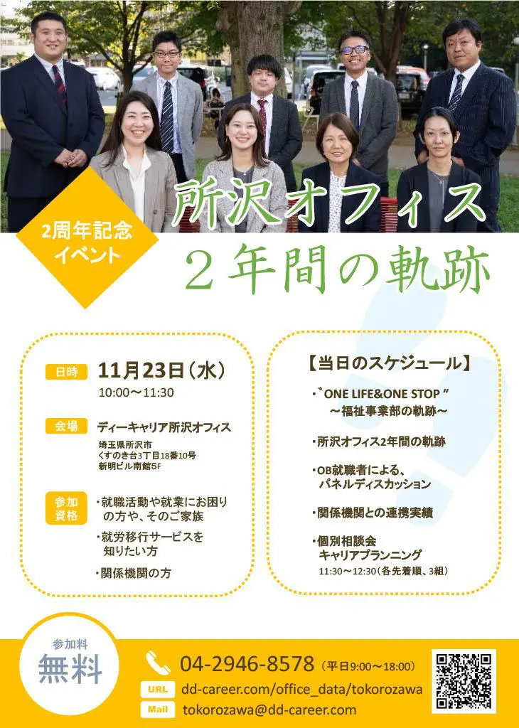 【ディーキャリア所沢オフィス】11月23日(水)「2周年記念イベント~卒業生によるパネルディスカッション等~」