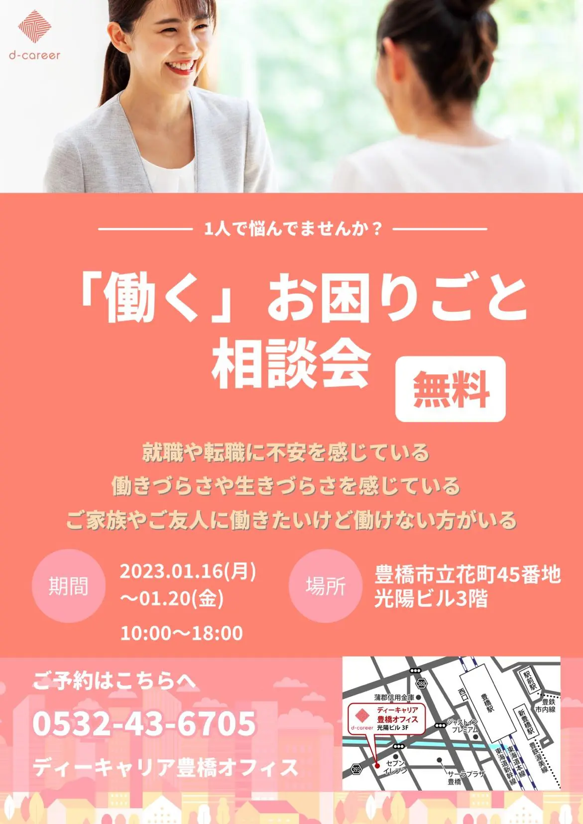 【ディーキャリア豊橋オフィス】2023年1月16日(月)・17日(火)・18日(水)・19日(木)・20日(金)「「働く」お困りごと相談会」