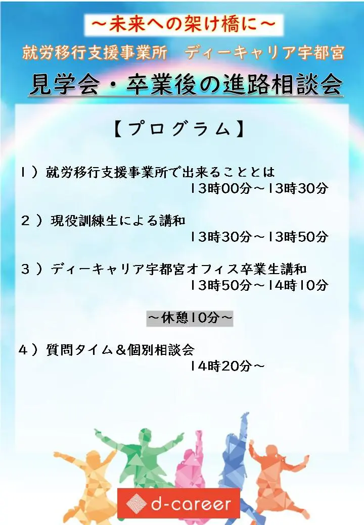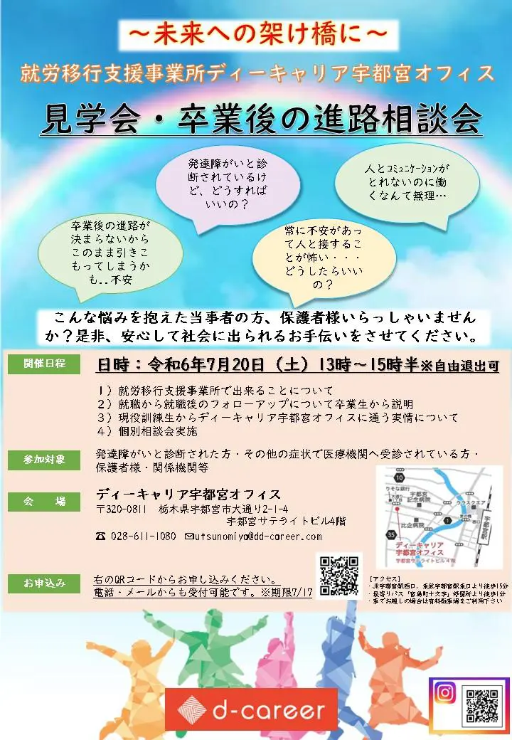 【ディーキャリア宇都宮オフィス】7月20日(土)「当事者様見学会・進路相談会」