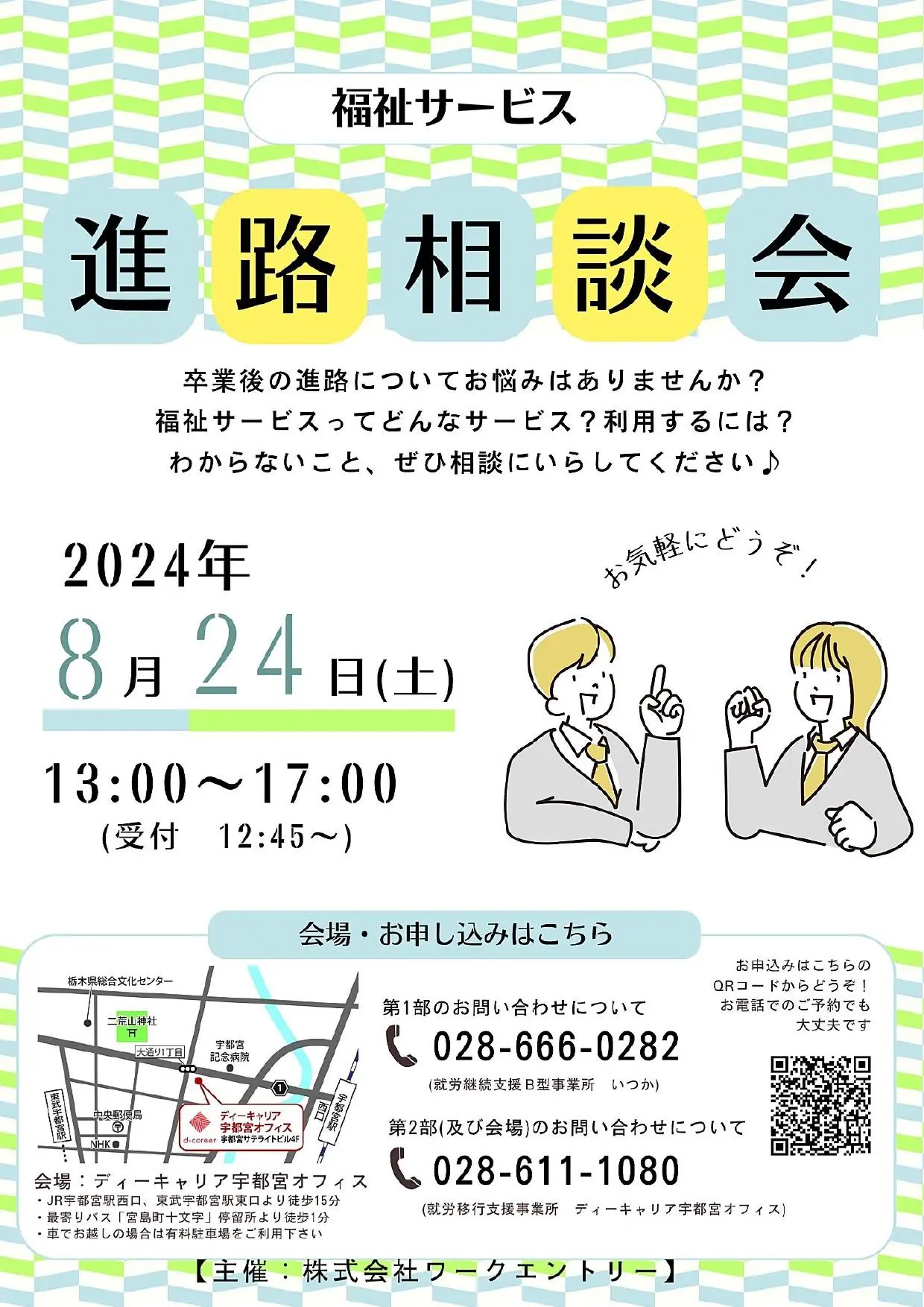 【ディーキャリア宇都宮オフィス】8月24日(土)「福祉サービス 進路相談会」