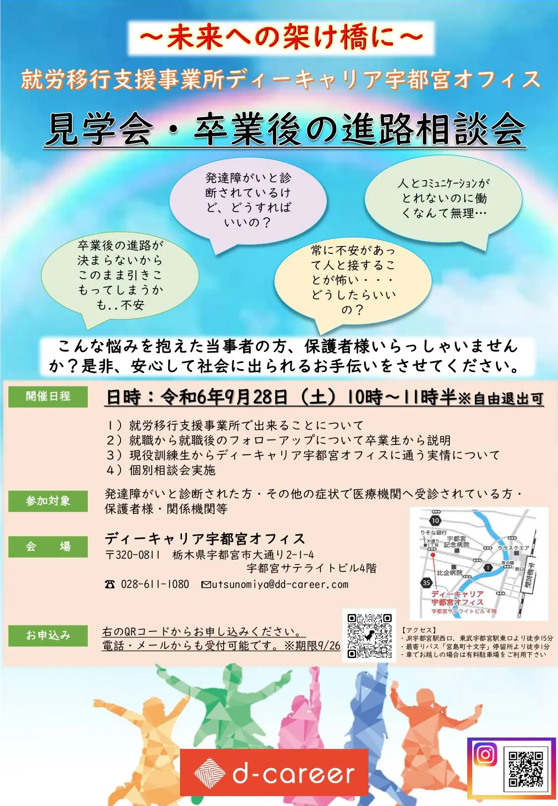 【ディーキャリア宇都宮オフィス】9月28日(土)「就労移行支援事業所って? 見学会・進路相談会」