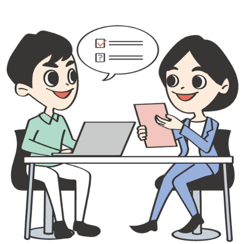 個別⾯談にて就職希望条件のすり合わせや経歴の棚卸を実施します。