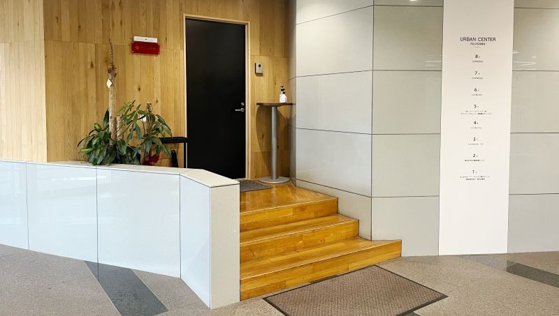 スターバックス横のドアを出て、左側にある階段を降ります。