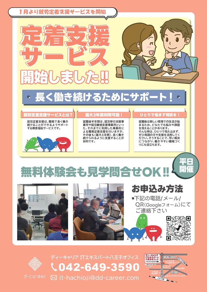 専門スタッフが常駐しスキル育成から就職までサポートします!