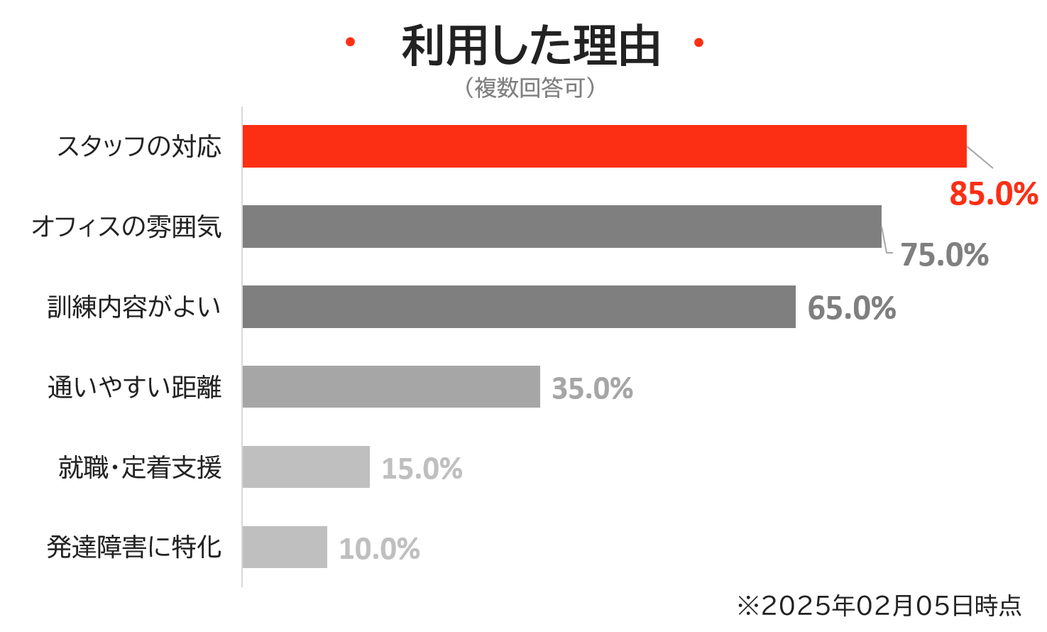 私たちの就労移行支援事業所は、「精神障害や発達障害を持つ方々に特化した」サポートを提供しています。「個別面談が気軽にできる」環境を整え、一人ひとりのニーズに合った支援を行います。さらに、「就職後の定着支援」も充実しており、安定した職場生活をサポートします。